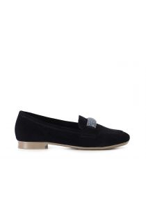 Mocassins en daim avec passant en strass ton sur ton décoré de strass