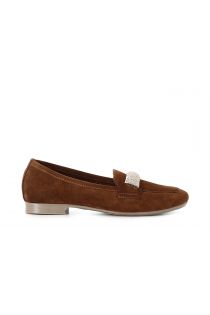 Mocassins en daim avec passant en strass ton sur ton décoré de strass