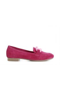 mocassins en daim de couleur unie avec chaîne décorative transparente hot pink