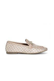 Mocassins pour femmes en cuir tressé avec mors décoré. semelle intérieure en cuir. forme légèrement effilée. le talon mesure 2.6 cm de haut.