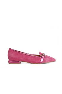 Mocassins en daim avec attache en strass décoratif. talon gainé de cuir lamé de 15 mm de haut.