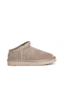 Mule en daim avec intérieur en fourrure synthétique. logo cafènoir en métal. semelle de 25 mm de hauteur.