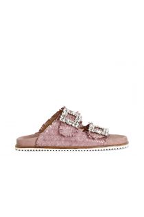 mules à double boucle strass en cuir tressé pink