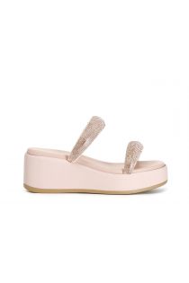 mules avec semelle compensée et double bande avec strass powder