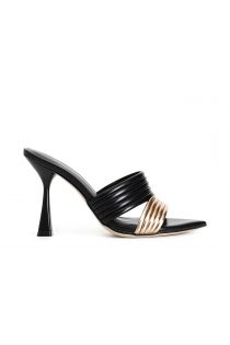 Mules bicolore avec bandes matelassées. semelle intérieure en cuir. avec sa forme élancée cette chaussure vous offrira une touche d'élégance et de séduction. talon haut bobine de 90 mm.