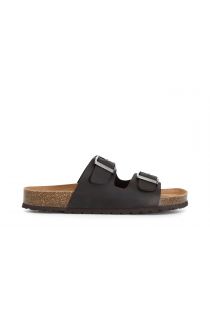 Mules avec deux bandes en cuir sur semelle renforcée.