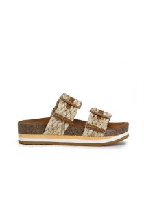 mules double boucle en raphia tressé tan