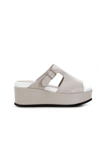mules en cuir avec boucle et semelle compensée