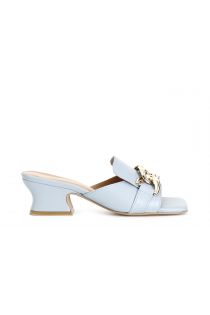mules en cuir avec chaîne light blu