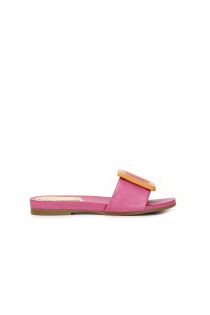Mules en cuir nappa souple avec passant spécial carré rembourré qui sert d’accessoire. Confortable semelle intérieure.