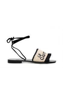 Mules en raphia avec broderie et laçage à nouer autour de la jambe