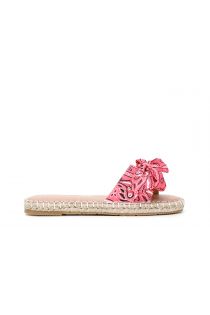 Mules en tissu fantaisie avec nœud sur semelle basse en corde