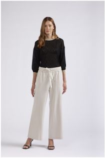 Pantalon droit avec ceinture élastique en tissu stretch. confortable et pratique pour un style décontracté impeccable.