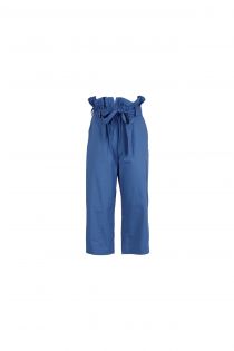 Pantalon confortable avec élastique et volant original à la taille avec fente sur le devant