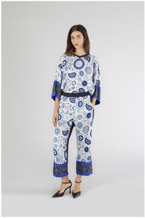pantalon bi-matière avec devant imprimé multiblue bandana