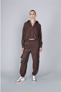 Pantalon cargo à taille et chevilles élastiquées, poches plaquées pratiques et coupe confortable. Confectionné dans un tissu fluide teint en pièce, il est idéal pour des looks décontractés et dynamiques. Le mannequin mesure 173 cm et porte une taille S.