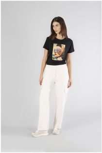Pantalon cargo avec application de strass sur les poches plaquées. fabriqué en polaire. vêtement parfait pour celles qui aiment être sportives mais sans renoncer à la féminité.