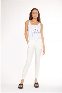 Pantalon chino réalisé en tissu super stretch de viscose élastique. Modèle qui suit sinueusement les lignes du corps. Incontournable, dans toutes les nuances qui composent la palette de couleurs.