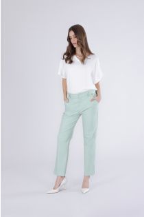 Pantalon chino pour femme avec fente en bas de jambe confectionné dans un tissu ultra-extensible pour une coupe confortable et ajustée. un modèle polyvalent et élégant idéal pour un look casual chic ou pour le bureau. le mannequin mesure 171 cm et porte une taille s. coupe : standard.