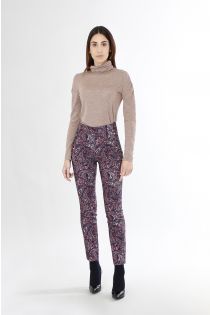 Pantalon cigarette réalisé dans un confortable tissu hyper-stretch imprimé. Des rivets raffinés délimitent et personnalisent les poches en agrémentant la partie supérieure.