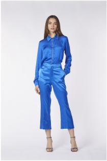 pantalon cropped flare en satin de viscose sapphire