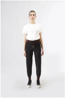 Pantalon jogger en fil de laine mélangée chaud et doux. point jersey avec traitement du logo jacquard. pièce parfaite qui ajoute une touche de style à votre garde-robe d'hiver.