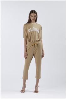 Pantalon type jogger avec taille élastiquée dans un tissu de type molleton mélangé de viscose avec du lurex. vêtement extrêmement confortable fonctionnel et tendance.