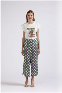 Pantalon jupe-culotte ligne confortable. en crêpe de viscose imprimé. fermeture à zip sur le côté.