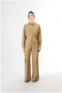 Pantalon coupe super large avec grandes poches et taille élastiquée dans le dos pour augmenter le confort. fabriqué en tissu avec une construction grisaille. un incontournable du dressing à porter en journée avec une chemise ou un pull assorti.