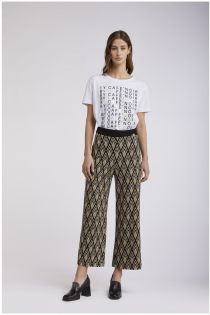 Pantalon à taille haute et à jambe large en tissu jacquard à motifs géométriques.