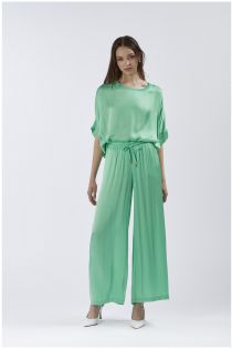 Pantalon large de type palazzo avec élastique à la taille en satin de viscose. confortable et pratique pour un style décontracté impeccable.