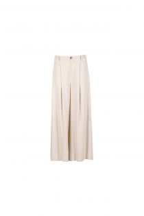 PANTALONS LARGES VERS LE BAS RÉALISÉ EN UN TISSU FLUIDE MÉLANGE DE LIN/VISCOSE OPÉRÉ.
