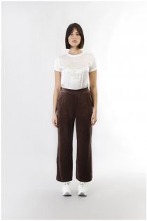 Pantalon de sport coupe palazzo en chenille douce. modèle avec taille élastique et poches latérales offrant praticité et confort au porteur.