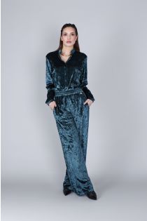 pantalon palazzo en chenille petrolium