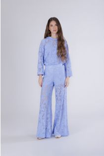 pantalon palazzo en dentelle light blu