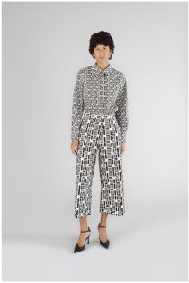 Pantalon palazzo en popeline de coton imprimé. parfaits à combiner avec la chemise coordonnée ils promettent de capter l'attention en toute occasion en apportant élégance et originalité.