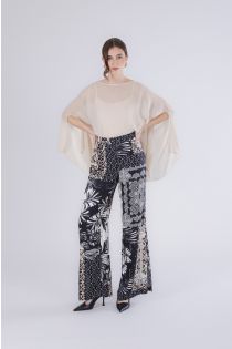 Pantalon palazzo en satin de viscose imprimé avec d'élégantes fentes latérales qui affinent la silhouette. léger fluide et raffiné il est idéal pour des looks d'été chics et des tenues de soirée tendance. le mannequin mesure 171 cm et porte une taille s. coupe : standard.