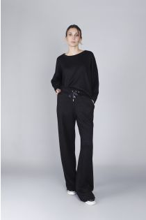 Pantalon de jogging coupe palazzo en polaire viscose et lurex chaude et confortable. Idéal pour un look décontracté tendance. Le mannequin mesure 173 cm et porte une taille S. Coupe classique.