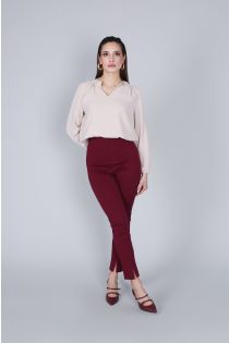 Pantalon skinny taille haute en tissu stretch avec fente sur le devant. Décontracté et confortable, il offre une coupe classique pour un look tendance et polyvalent. Le mannequin mesure 172 cm et porte une taille S.