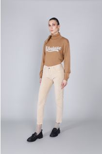 Pantalon skinny en velours malté teint en pièce, idéal pour un look casual chic. Confortable et extensible, il met en valeur la silhouette avec style et praticité. Le mannequin mesure 173 cm et porte une taille S.