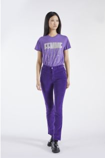 Pantalon ligne slim à taille haute, en velours gaufré confortable, précieux bouton verni
