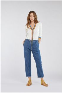 Pantalon pratique et confortable au style légèrement sportif avec coulisse à la taille. Réalisé en toile chambray souple