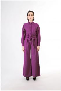 Pantalon coupe super large avec ceinture à la taille en tissu grisaille. un incontournable du dressing à porter en journée avec une chemise ou un pull assorti.