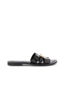 pantoufle plate en cuir avec large bride et accessoire bijou black