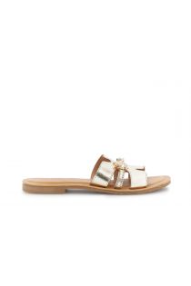 pantoufle plate en cuir avec large bride et accessoire bijou gold