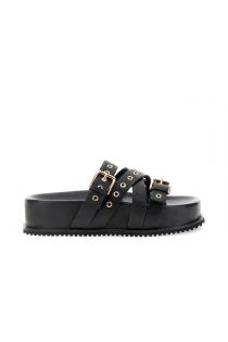 pantoufles en cuir à brides multiples et cloutées black