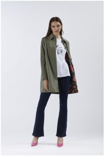 Vêtement essentiel dans la garde-robe de printemps. pardessus à simple boutonnage en tissu tecafènoirico avec doublure imprimée. manches longues.
