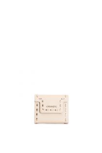 Petit portefeuille à rabat en saffiano avec filetage métallique logo en métal.