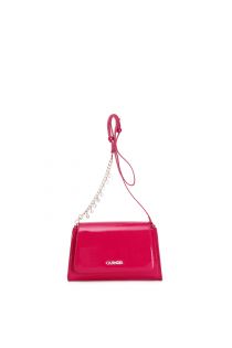 petit sac bandoulière à rabat effet verni avec chaîne et breloques logo hot pink
