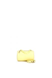 Petit sac bowling en matériau effet mat avec fermeture éclair logo haute fréquence chaîne en plastique pour le porter à la main et bandoulière en option.